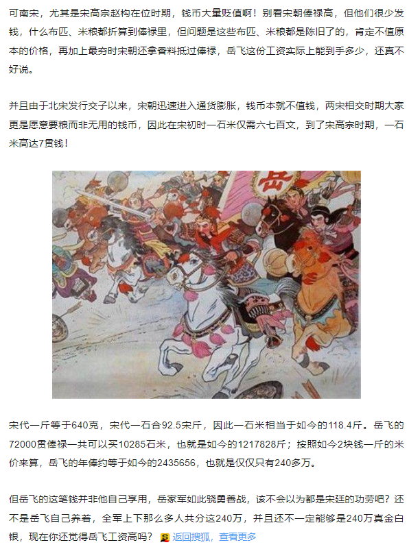 岳飞年俸禄是72000贯,相当于现在多少钱?跟你想的可能有所出入